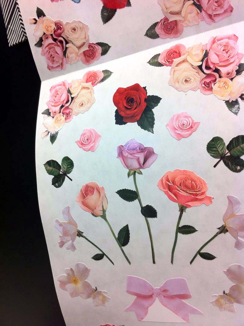 鑲金邊充滿節日氣息的動物貼紙,一張210¥(台幣約80),有一點點浮雕立體感,底也是透明的,應該就是收藏用吧。